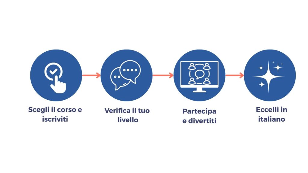 Ti offro una video chiamata conoscitiva gratuita di 20 minuti dove parleremo dei tuoi obiettivi e delle tue motivazioni e dove potrai farmi tutte le domande che vuoi. Sarà l’occasione per verificare se il tuo livello ti consente di partecipare sin da subito ai corsi di gruppo. Un primo passo verso la padronanza dell’italiano!